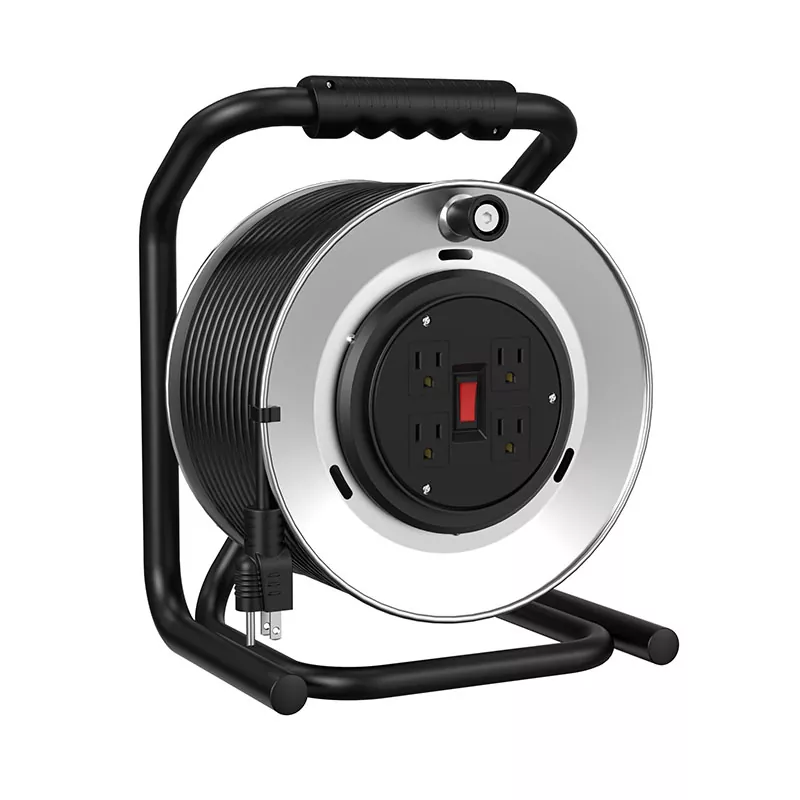Hogar > Productos > Carrete de cable > Carrete de cordón de metal > 4 salidas de metal de metal 120 pies