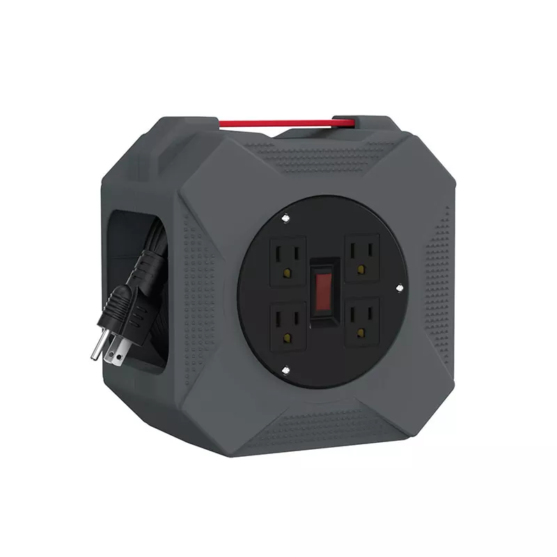 3. No conecte un enchufe de tres puntas a un carrete de cable de plástico de 4 salidas de dos orificios de 45 pies.